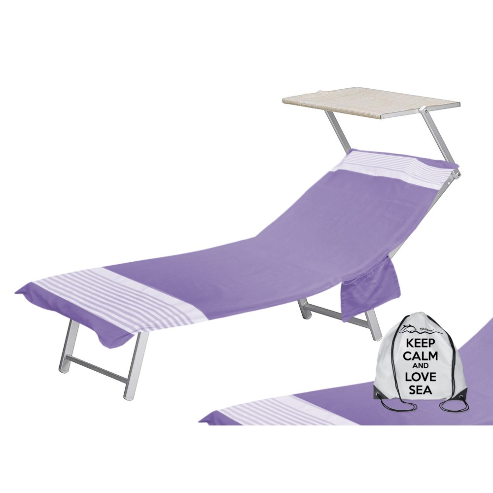 This beach towel with sunbed corners in shades of purple is made of soft cotton and is ideal for those who want to bask in the sun.