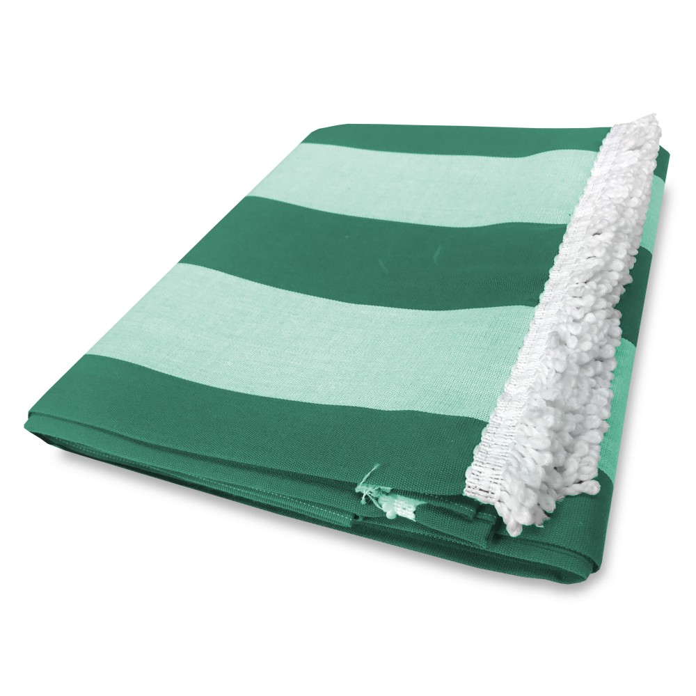 Ready-to-use "wide green stripe" awning made of indestructible acrylic fabric.