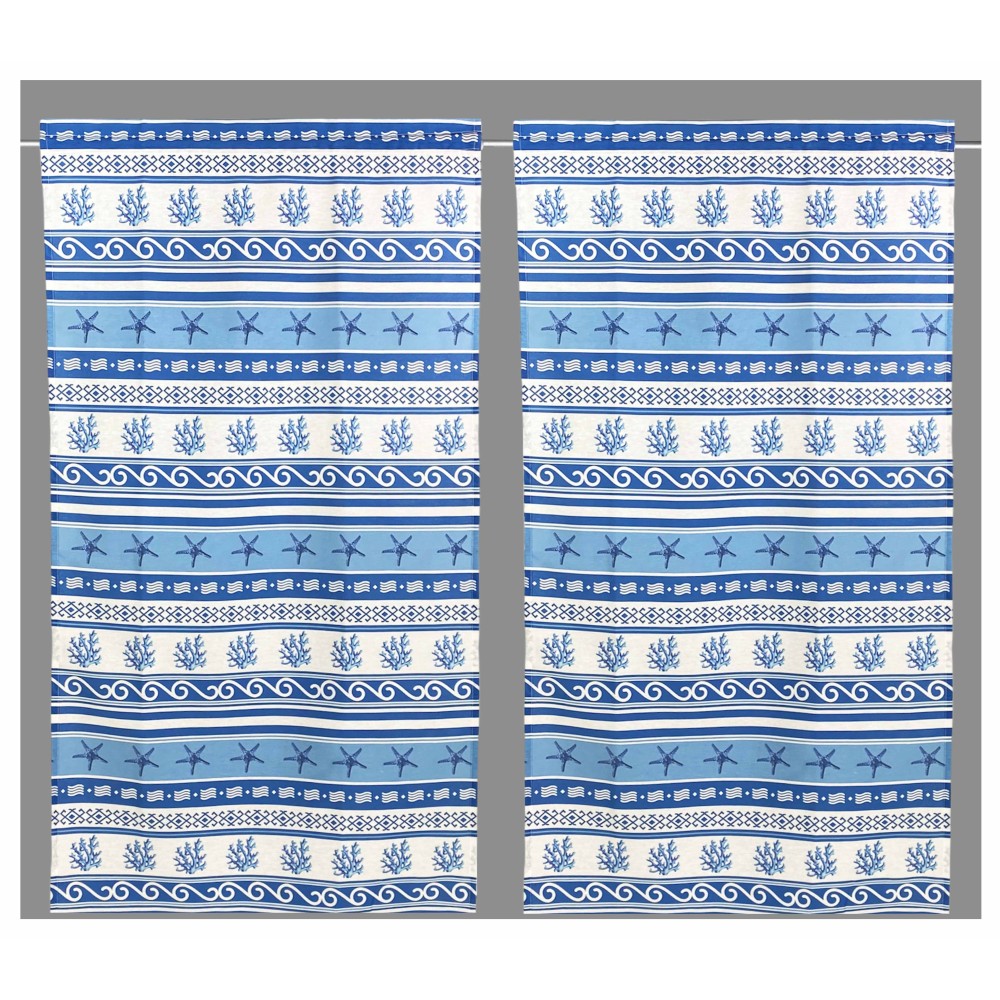 "GRECIA BLUE" curtain ready-to-use, made of cotton blend fabric that is very soft to the touch and does not wrinkle.
