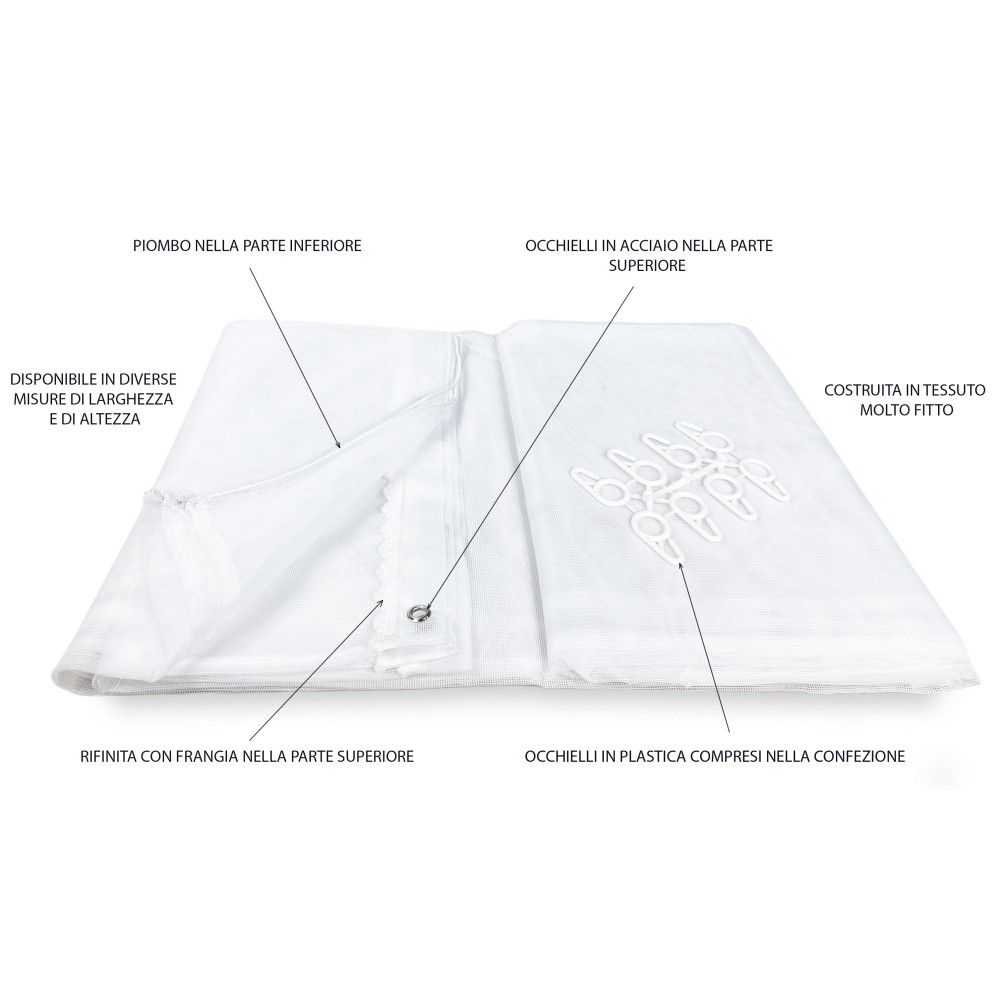 Cortina de mosquitera "WHITE PLAIN" empaquetada lista para usar hecha de tela de malla marquesette muy densa en comparación con la red clásica es ideal para no dejar que los mosquitos e insectos molestos se filtren en su hogar.