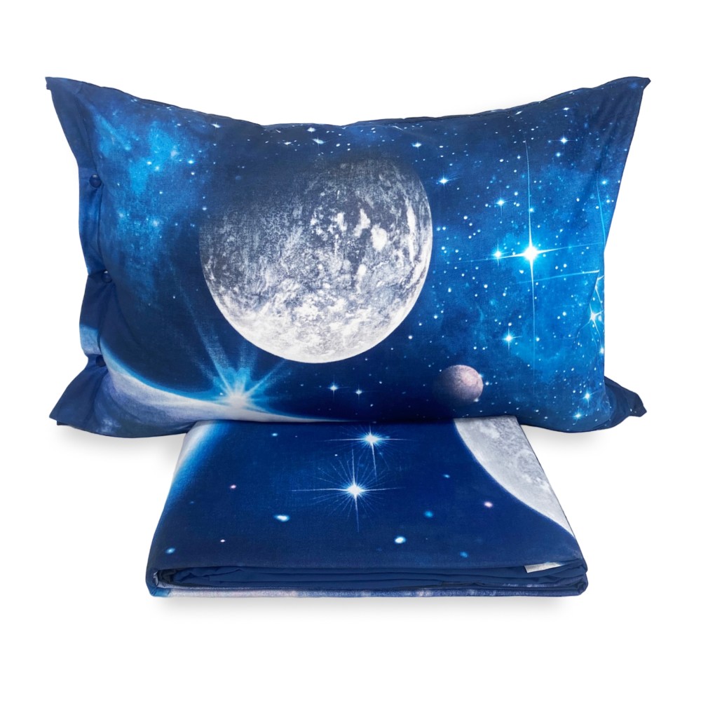 Feuille complète imprimée numériquement avec planète et étoiles, vraiment originale.... en pur coton 100%.