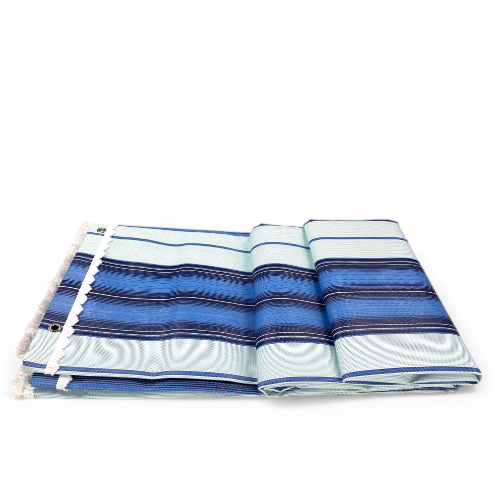 L’auvent Vertigo by Tex Family est emballé et prêt à être installé sur le balcon, la terrasse et le jardin. La housse est opaque et faite à 100 % de polyester : entièrement imperméable et résistante à l’eau, elle aide à se protéger du soleil et à rendre vos espaces extérieurs plus confortables avec un aspect frais et nautique.