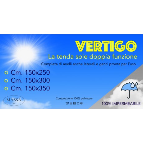 Tenda sole " Vertigo righino giallo e marrone " confezionata già pronta per l'uso realizzata in tessuto indistruttibile di poliestere COMPLETAMENTE IMPERMEABILE.